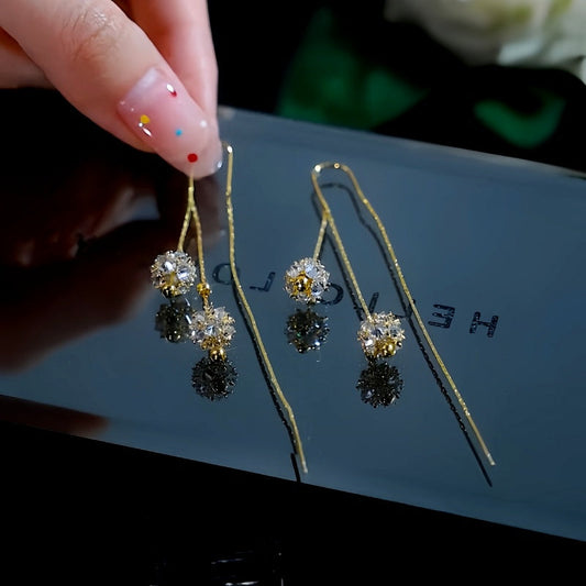 14K Gold-plated Elegant Zircon Tassel Earrings