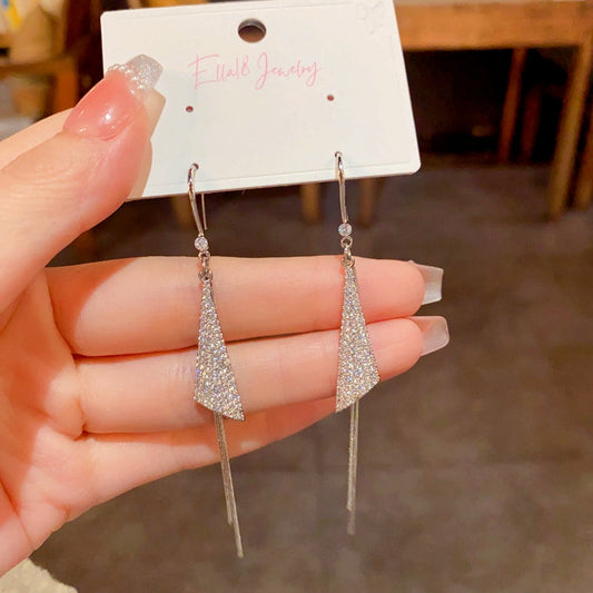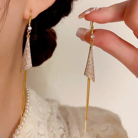 14K Gold-Plated Elegant Zircon Triangle Tassel Earrings