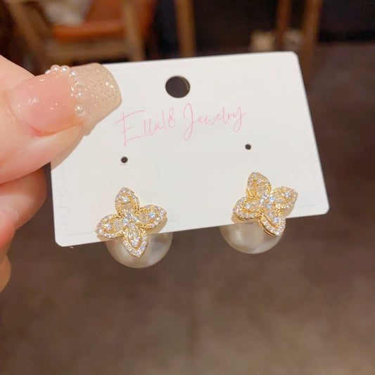 14K Gold-Plated Flower Pearl Jacket Earrings