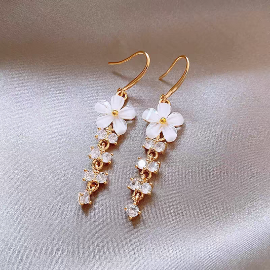 14K Gold-plated Flower Pearl Threader Tassel Earrings