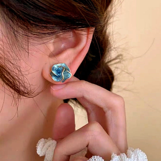 14K Gold-Plated Haze Blue Flower Stud Earrings
