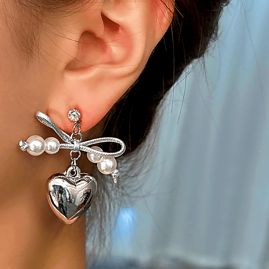 14K Gold-Plated Heart Pearl Tassel Earrings