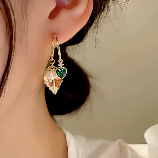 14K Gold-Plated Heart Leaf Pearl Earrings