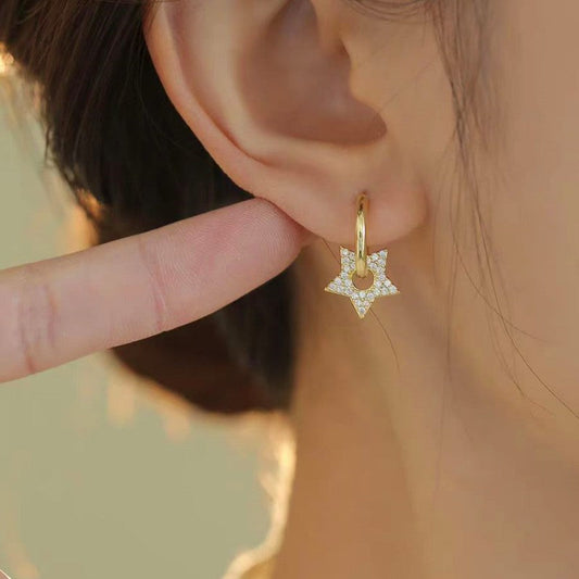 14K Gold-Plated Heart Design Ear Clip And Threader Earrings
