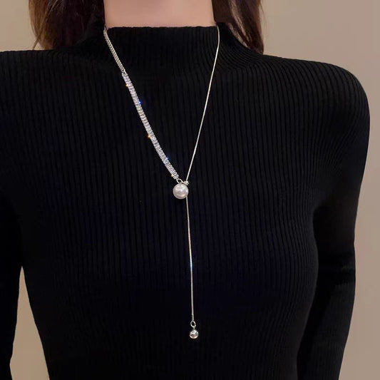 14K Gold-Plated Adjustable Zircon Pearl Necklace