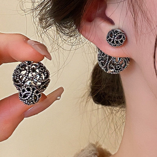 14K Gold-Plated Antique Silver Retro Ball Earrings