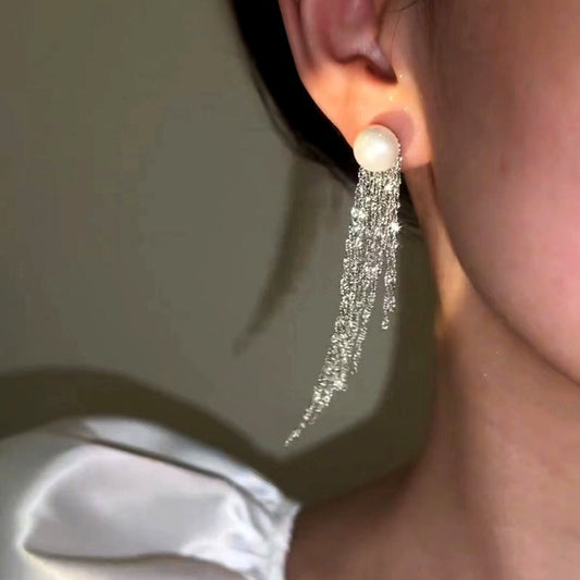 14K Gold-Plated Arc-Design Waterfall Tassel Earrings