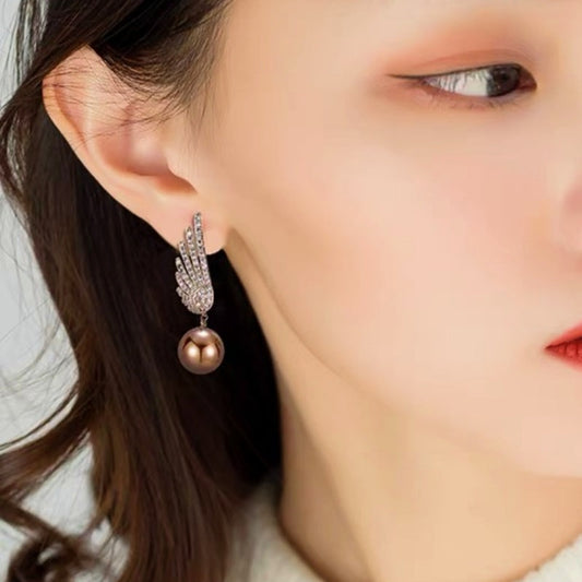 14K Gold-plated Artificial Pearl Angel Wings Earrings