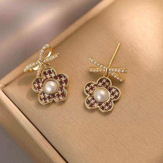 14K Gold-plated Houndstooth Flower Earrings