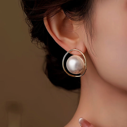 14K Gold-Plated Large Pearl Earrings