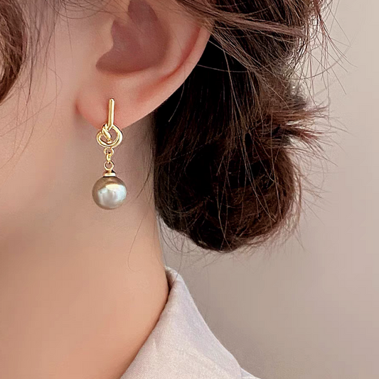 14K Gold-plated Knotted Gray Pearl Earrings