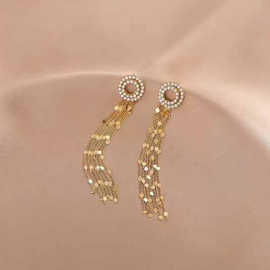 14K Gold-Plated Long Diamond Flower Tassel Earrings