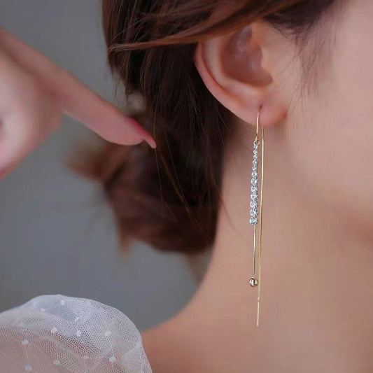 14K Gold-Plated Long Tassel Ice Flower Threader Earrings