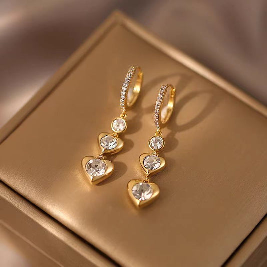 14K Gold-plated Love Red Heart Enamel Oil Drop Earrings