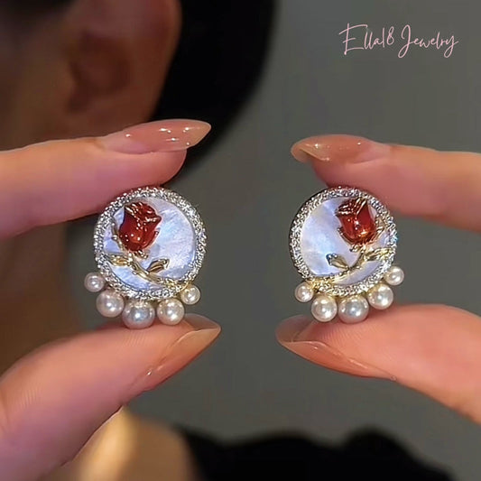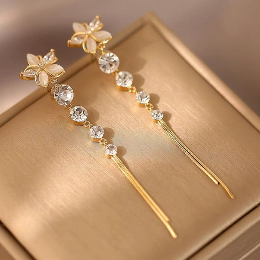14K Gold-plated Artificial Zircon Cat's Eye Flower Earrings