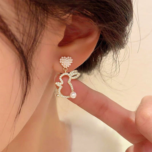 14K Gold-Plated Artificial Pearl Lovely Rabbit Earrings