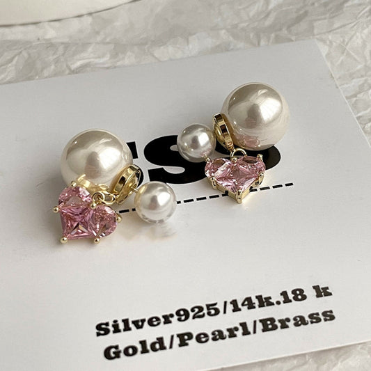 14K Gold-plated Artificial Pearl Heart-Design Stud Earrings