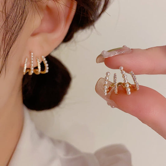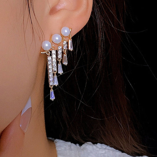 14K Gold-plated Artificial Pearl Eight-Pointed Star Earrings
