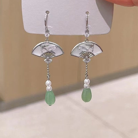 14k Gold-Plated Asian Style Folding Fan Ear Hook Earrings