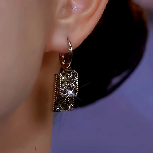 14K Gold-Plated Luxury Coffee-Colored Square Water Drop Earrings