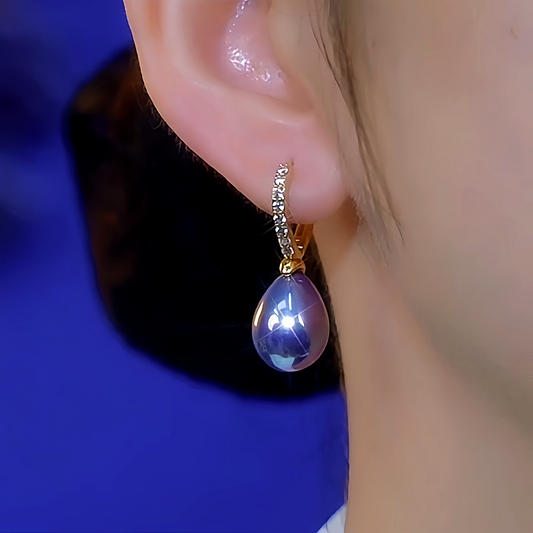 14K Gold-Plated Luxury Diamond-Encrusted Purple Pearl Earrings