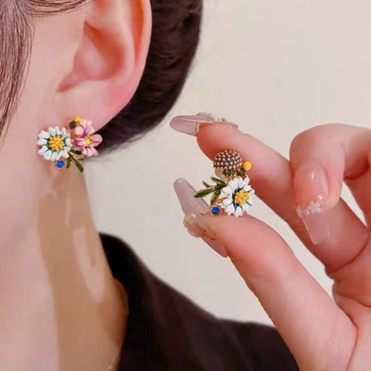 14K Gold-plated Asymmetrical Daisy Stud Earrings