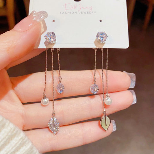 14K Gold-plated Asymmetric Zircon Butterfly Pearl Earrings