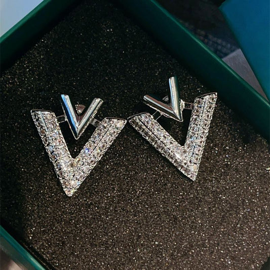 14K Gold-Plated Luxury Three-Dimensional Crystal Diamond Geometric Earrings