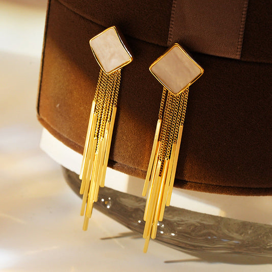 14K Gold-Plated Black And White Rhombus Long Earrings