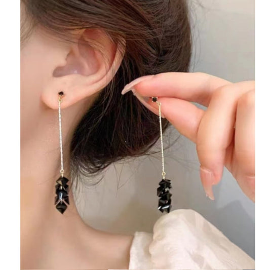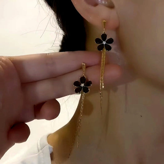 14K Gold-Plated Black Diamond Long Tassel Earrings