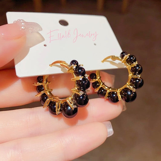 14K Gold-Plated Black Diamond Flower Ball Earrings