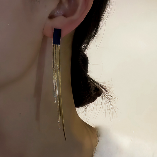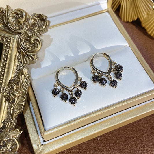 14k Gold-Plated Black Zircon Crystal Long Threader Tassel Earrings