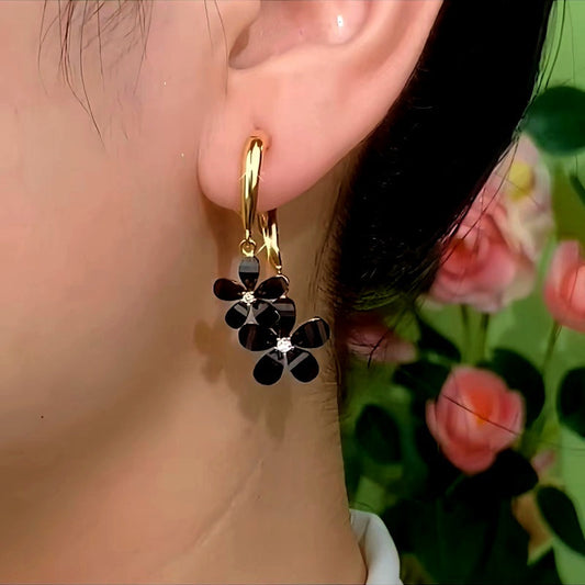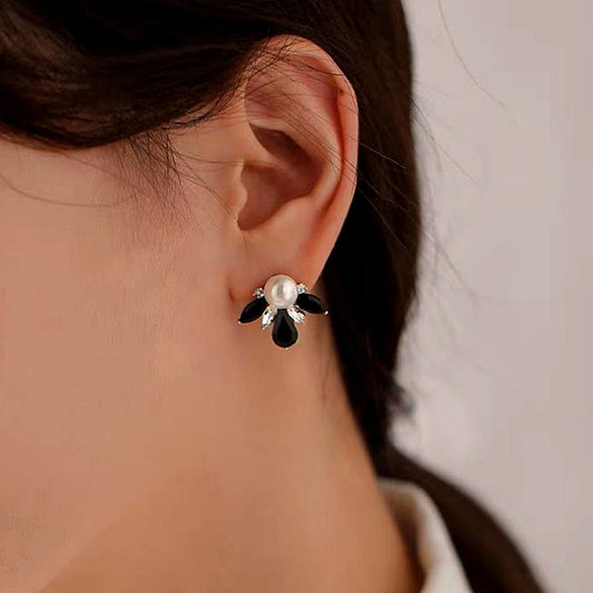 14K Gold-Plated Black Petal Pearl Stud Earrings
