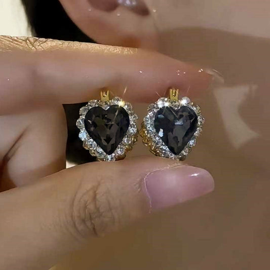 14K Gold-Plated Black Zircon Heart-Design Earrings