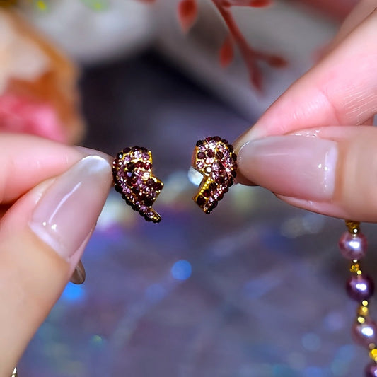 14K Gold-Plated Zircon Diamond Heart Stud Earrings