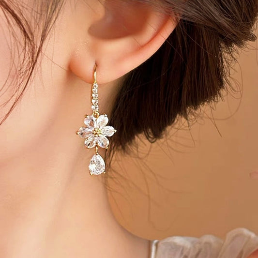 14K Gold-Plated Zircon Flower Earrings