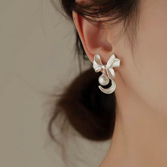 14K Gold-Plated Bow And Pearl Stud Earrings