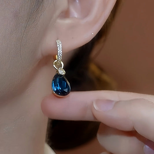 14K Gold-Plated Blue Water Drop Crystal Earrings