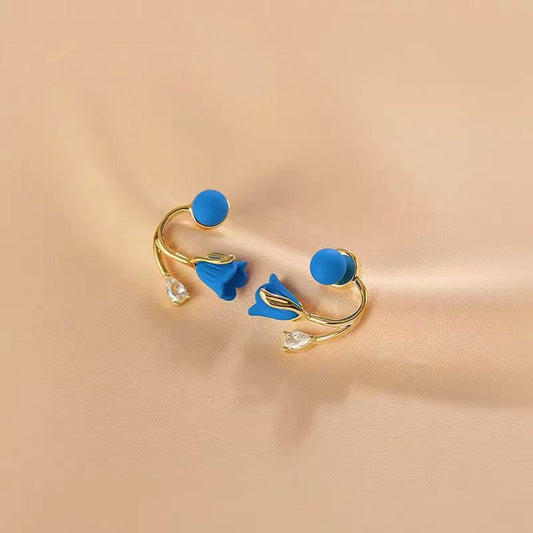 14K Gold-plated Blue Rose Stud Earrings