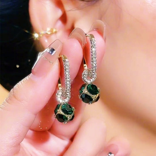 14K Gold-plated Zircon Rhinestone Ball Earrings
