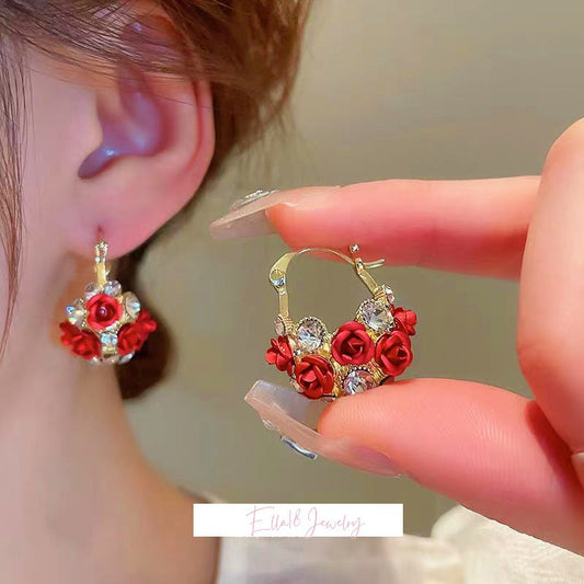 14K Gold-Plated Zircon Rose Flower Earrings