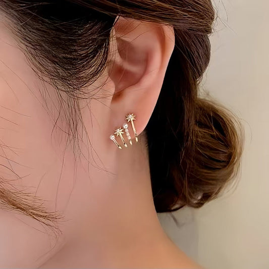 14K Gold-Plated Zircon Star Ear Cuffs(1 Pair)