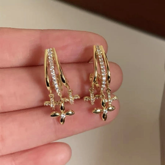 14K Gold-Plated Zircon Star Wheat Tassel Earrings