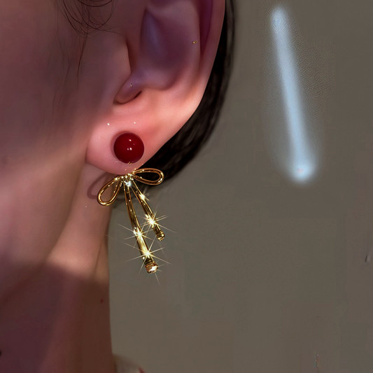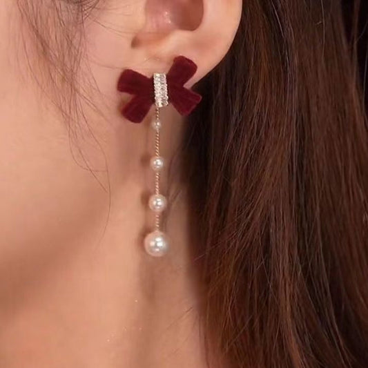 14K Gold-Plated Bow Pearl Tassel Earrings