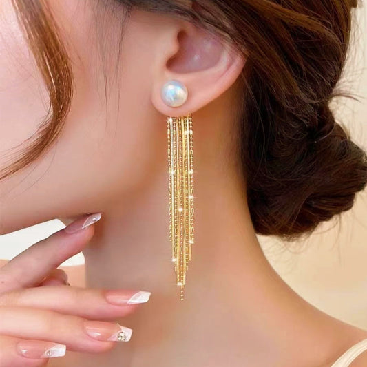 18K Gold-Plated Polished Eight-Pointed Star Tassel Two-Piece Earrings