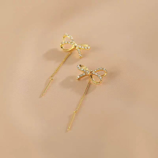 14K Gold-Plated Bowknot Purple Pearl Threader Tassel Earrings