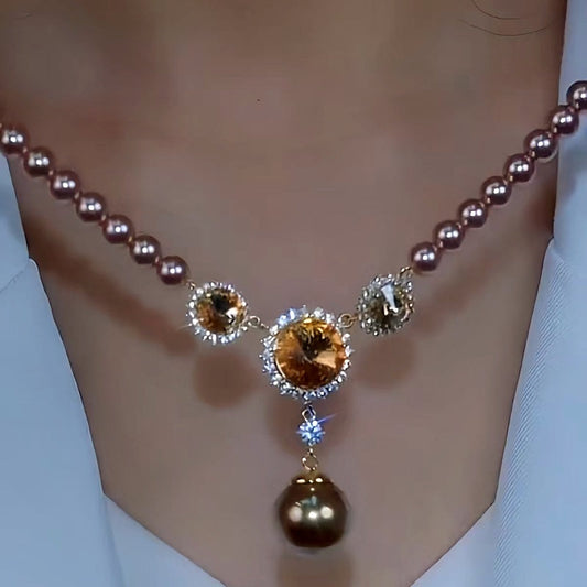 14K Gold-Plated Brown Crystal Tassel Necklace