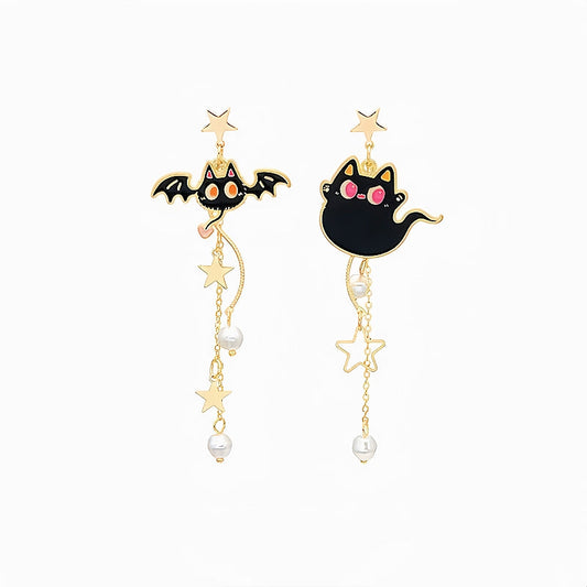 Halloween 14K Gold-Plated Star Bow Cat Earrings