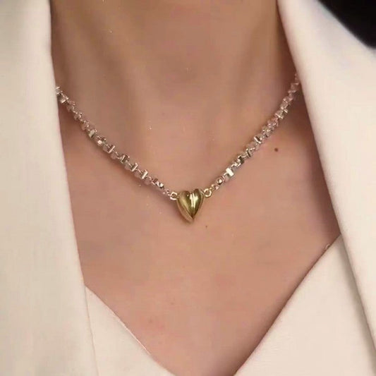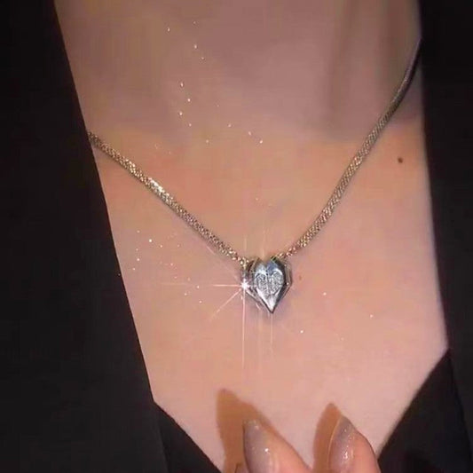 Silver Plated Magnetic Three-Dimensional Diamond Heart Necklaces