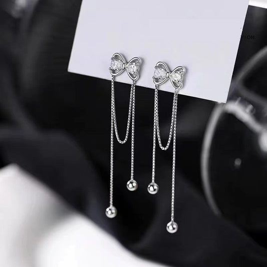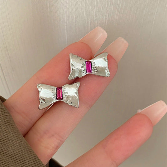 Silver Post Bow Heart Cross Asymmetrical Earrings
